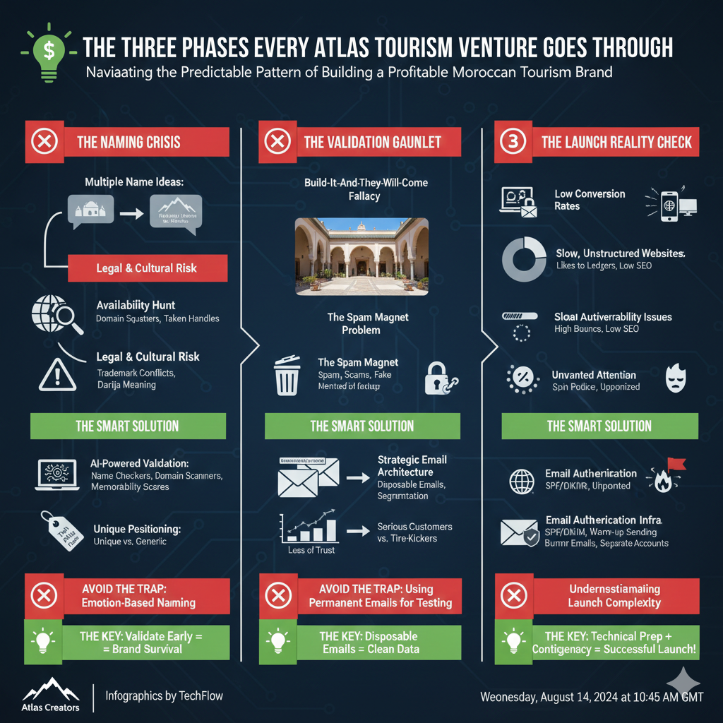 Smart entrepreneurs now validate names before falling in love with them. They check if the business name creates trademark conflicts with existing Moroccan tourism operators. They verify the name doesn’t accidentally mean something unfortunate in Darija or French. They ensure the name works phonetically when French tourists try to pronounce it over the phone.